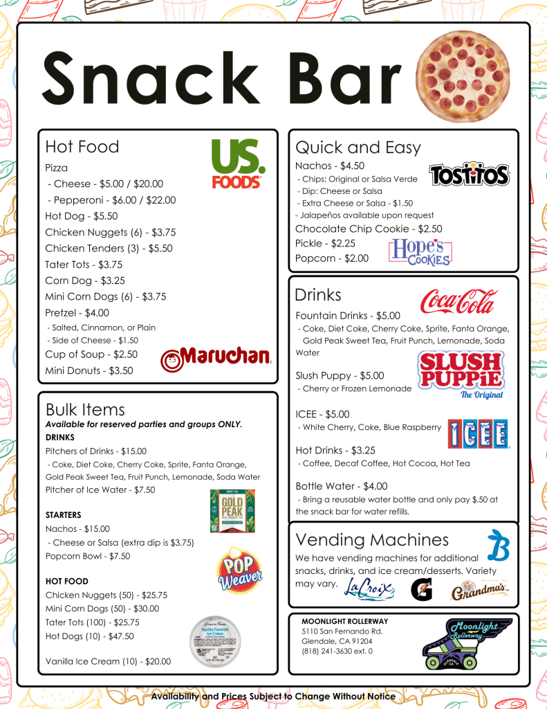 All Items Include Tax | Availability and Prices Subject to Change Without Notice