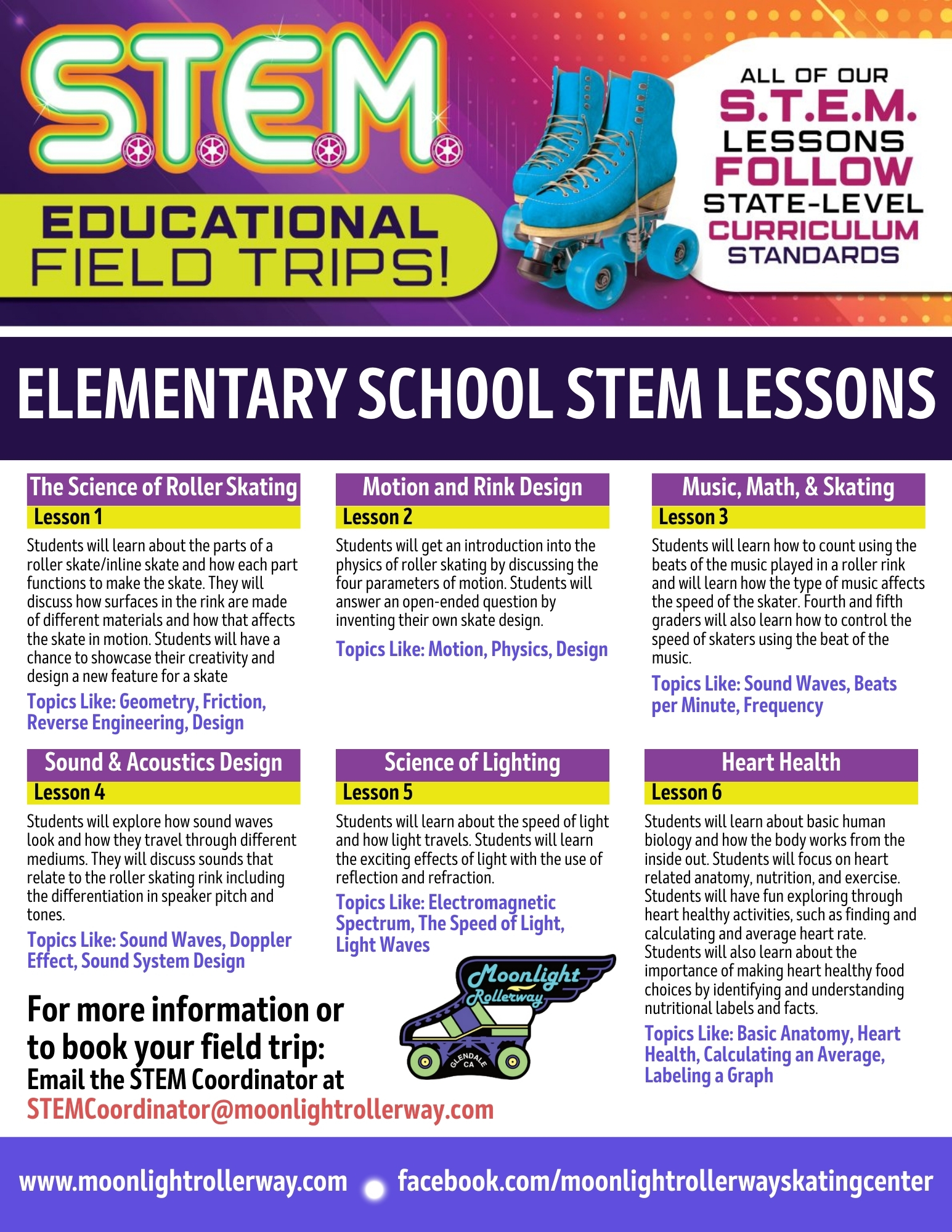 Bring the classroom to life with our unique STEM field trips that merge hands-on learning with roller skating fun. This program includes: